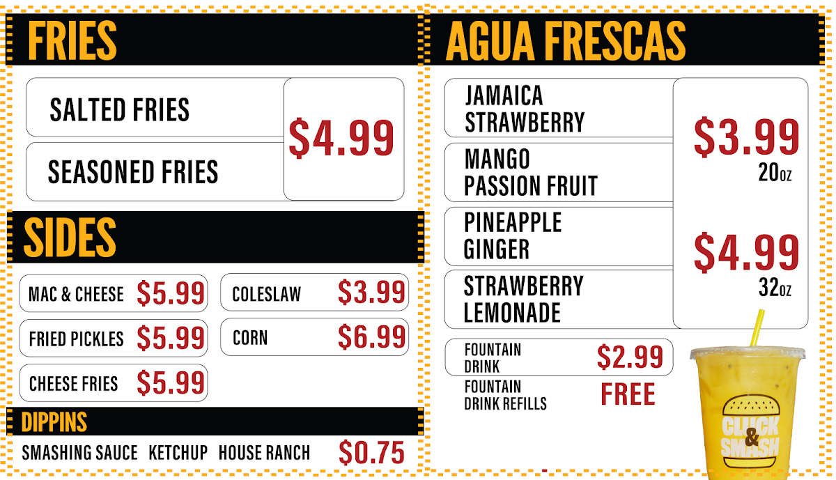 Sides: Sides complement the main dishes with selections like coleslaw, macaroni and cheese, loaded fries, and classic French fries.