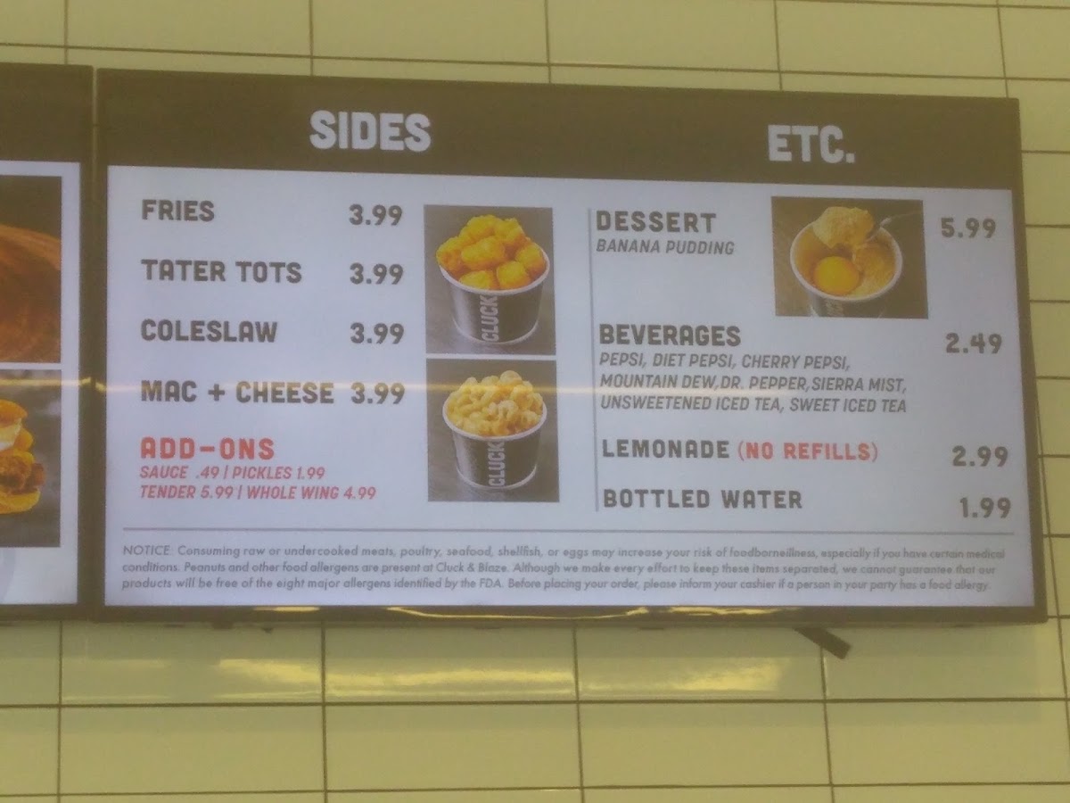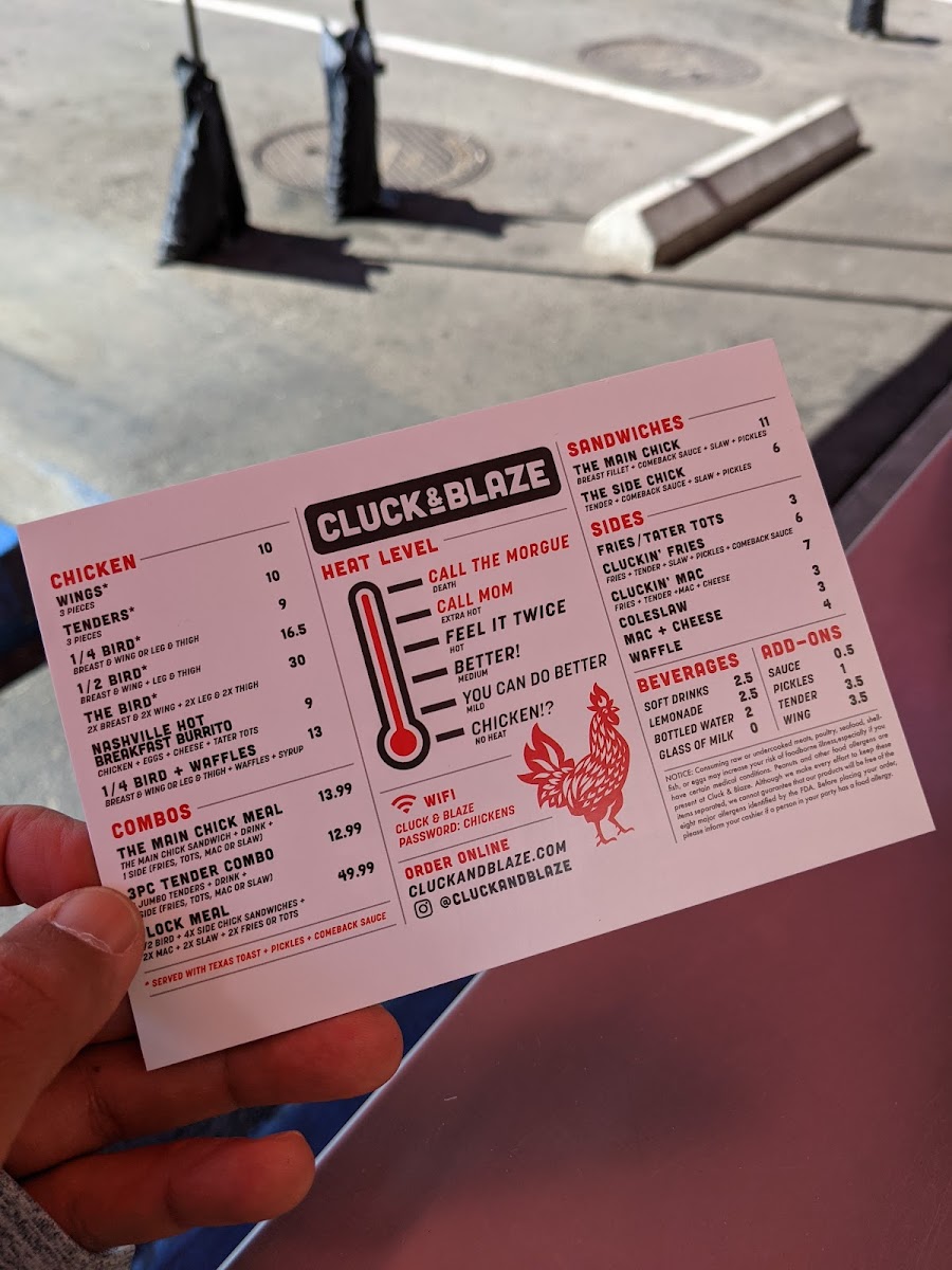 Cluck & Blaze Menu